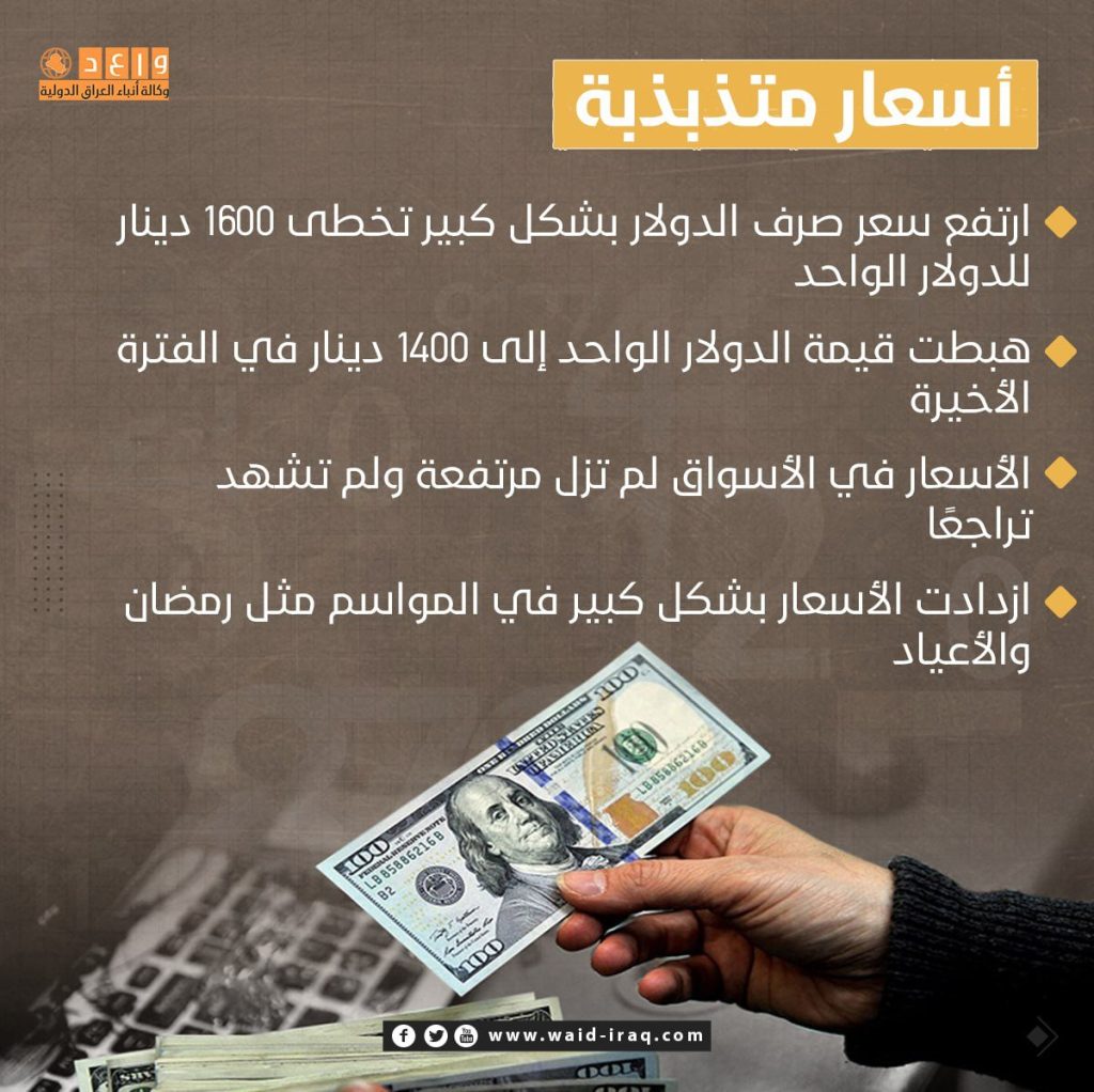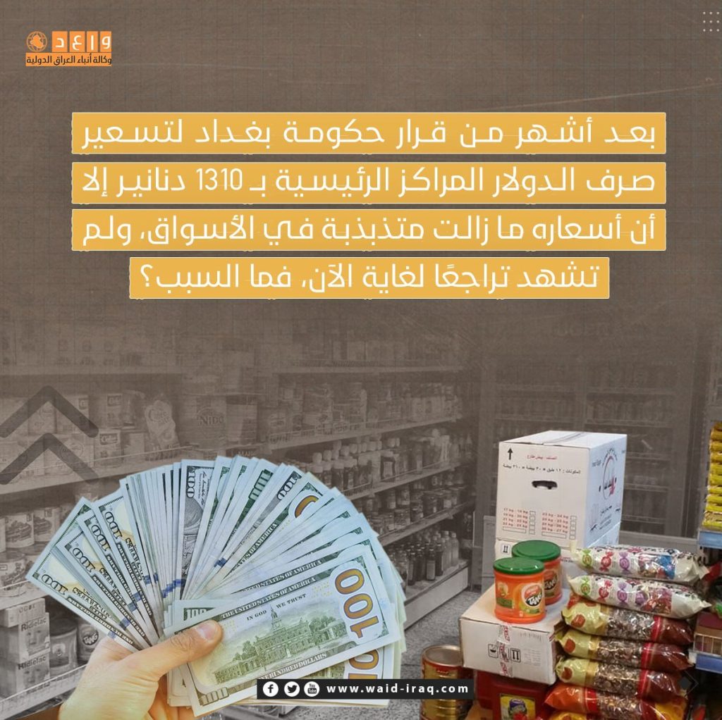 بعد أشهر من قرار حكومة بغداد تسعير صرف الدولار بـ1310 دنانير؛ إلا أن أسعاره ما زالت متذبذبة في الأسواق، وتلقي بظلالها على مستوى الغلاء المستشري في العراق.
