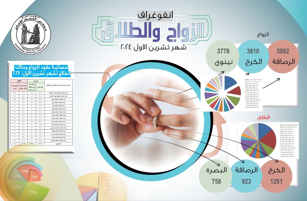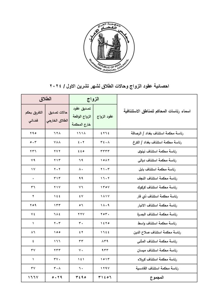 احصائية الزواج والطلاق لشهر تشرين الاول لسنة 2024