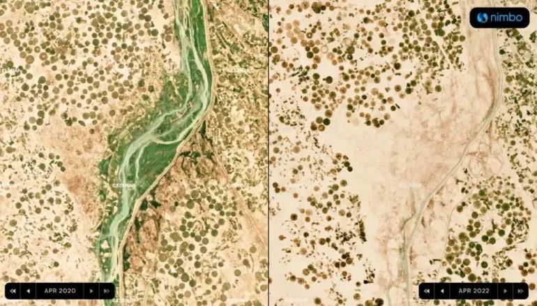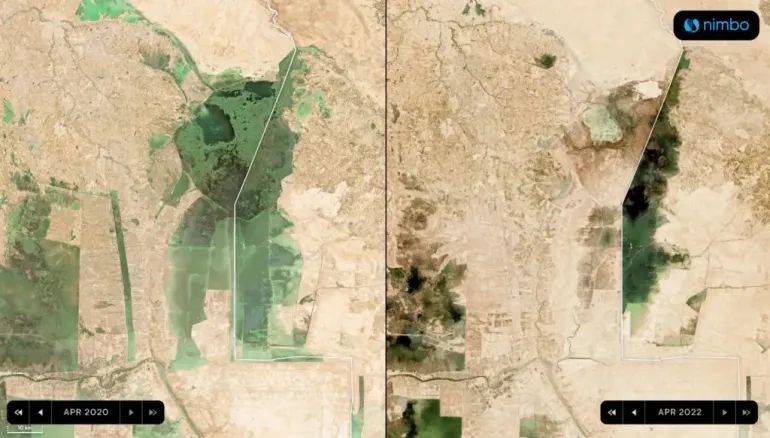 ويشارك سكر صورا التقطها بواسطة الأقمار الاصطناعية لمنطقة الأهوار في العراق في عامي 2020 و2022 تُظهر التغير المناخي الكبير والمتسارع الذي يصيب العراق، وصورا أخرى لنهر دجلة بسامراء العراق في نفس العامين تُظهر الجفاف في النهر وتراجع المساحة الخضراء في المنطقة، ويؤكد أنه عند استخدام الذكاء الاصطناعي في هذه الحالات يمكن أن يفسر ويحلل هذه الصور ويعطي نتائج أفضل وأسرع، كما يمكن التنبؤ بالشكل الذي سيكون عليه النهر والأهوار في السنوات القادمة، وبالتالي يمكن السعي والعمل على التخفيف من حدتها والبحث عن حلول قبل فوات الأوان.