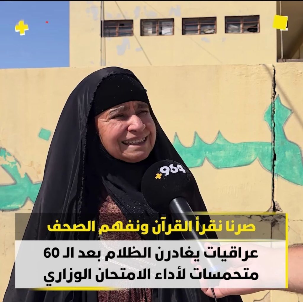 نشرت شبكة 964 فيديو لنساء مسنات يؤدين الامتحان الوزاري للسادس الابتدائي ضمن تعليم محو الامية في منطقة السادة وبعويزة شمال محافظة نينوى