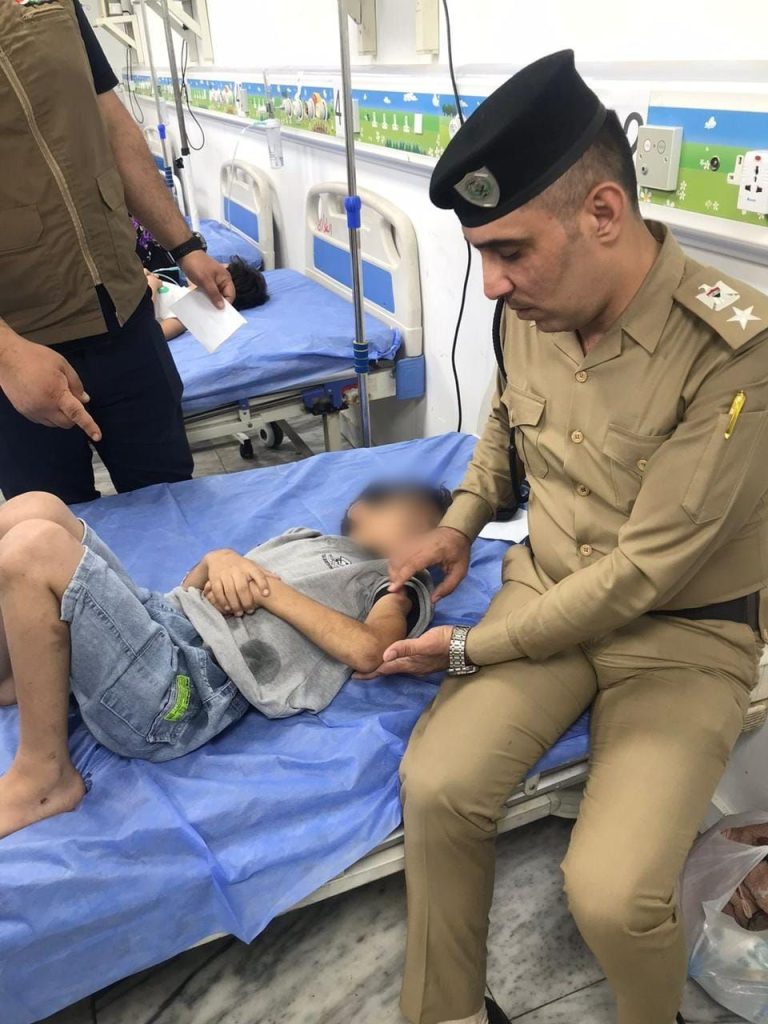 واتخذت الشرطة المجتمعية الاجراءات القانونية بحقها. جاءت هذه العملية بناء على مناشدة من احد العاملين في مستشفى الطفل المركزي الذي تم نقل الطفل إليها لتلقي العلاج .