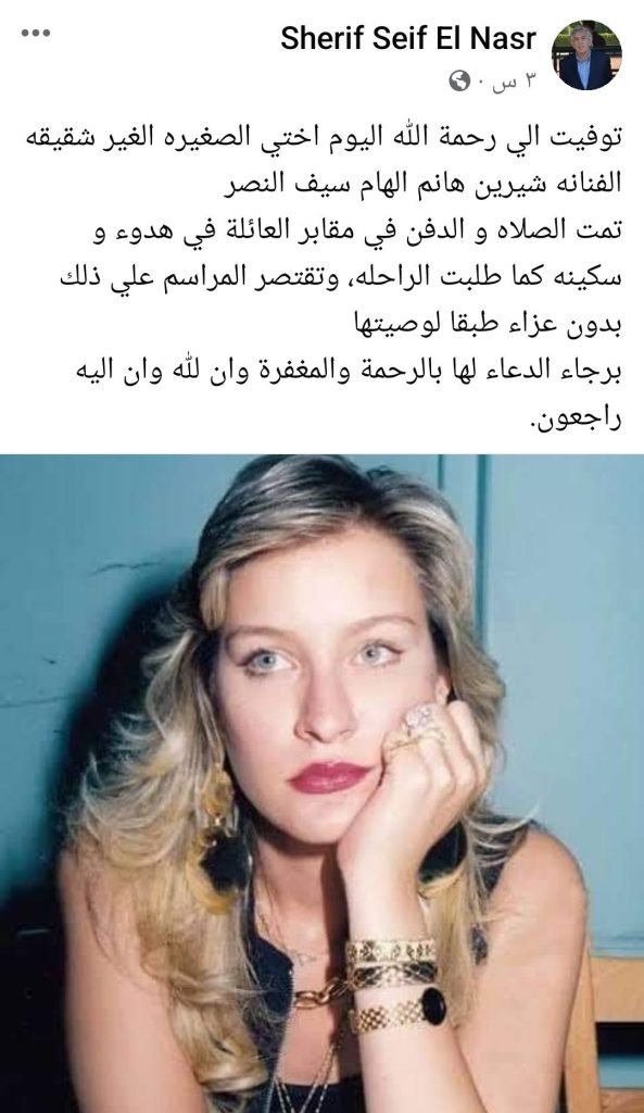 شيرين سيف النصر «جميلة التسعينات» تغادر في هدوء