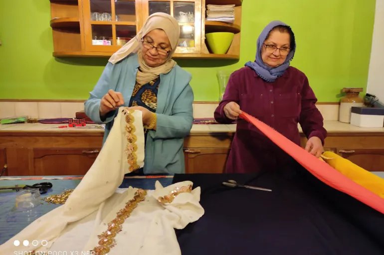 وأشارت إلى أن الدورات كانت مخصصة للأرامل والمحتاجات، إلا أن الزبائن عادة يكن من سيدات المجتمع المخملي بسبب ارتفاع أسعار القطع المنتجة.