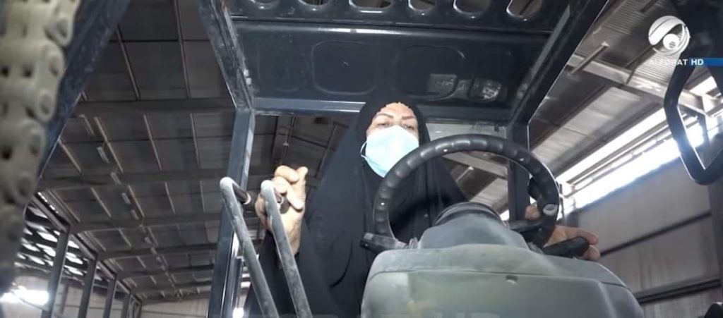 أم علي.. أول امرأة كربلائية تعمل كسائقة رافعة شوكية